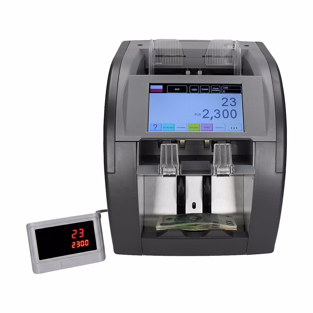 Daruma AB-980 to profesjonalna liczarka wartościowa z automatycznym rozpoznawaniem waluty i nominału, wykrywaniem fałszywych banknotów oraz 2-kieszeniową konstrukcją umożliwiającą pracę bez przerywania liczenia. Kolorowy 7-calowy ekran dotykowy LCD i menu w języku polskim zapewniają szybką i intuicyjną obsługę nawet dla nowych użytkowników.