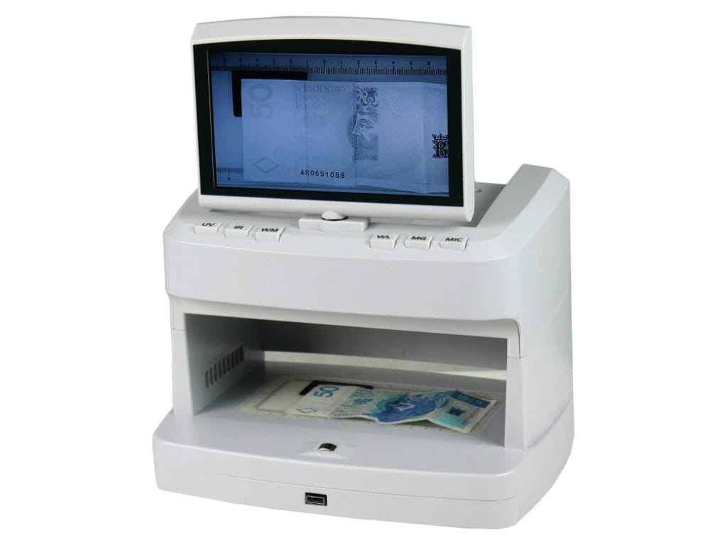 Tester Glover IRD-2500+ jest profesjonalnym urządzeniem, zapewniającym bezbłędną i bardzo dokładną weryfikację dokumentów oraz banknotów. Urządzenie dysponuje bardzo szerokim zakresem metod detekcji, daje możliwość weryfikacji większości zabezpieczeń, które występują w różnorodnych dokumentach i walutach. Tester posiada światło ultrafioletowe (UV 365 nm), podczerwień IR (850 nm) emitowaną w 3 płaszczyznach, światło białe padające z góry, z dołu (transparentne) i boczne, kontrolę rozmiaru, głowicę magnetyczną, specjalny otwór umożliwiający wkładanie całych kartek formatu A4. Na wyposażeniu urządzenia jest też kamera z lupą o dziesięciokrotnym powiększeniu. Dzięki tej funkcji w łatwy sposób możemy szczegółowo zbadać położenie, kształt oraz strukturę mikrodruków, znaków widzialnych w promieniach IR, UV oraz znaków wodnych. Dużą zaletą tej wersji urządzenia jest kolorowa kamera główna, pozwalająca na obserwowanie na ekranie większości cech utajonych.Parametry testera Glover IRD-2500+