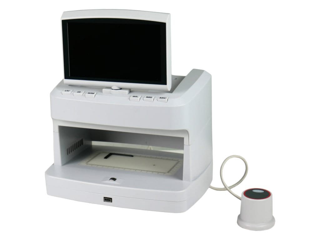 - Tryby detekcji – detekcja w podczerwieni, detekcja w dwóch długościach fal IR, detekcja UV – 365 nm, detekcja w świetle białym, detekcja zabezpieczeń MG, lupa
