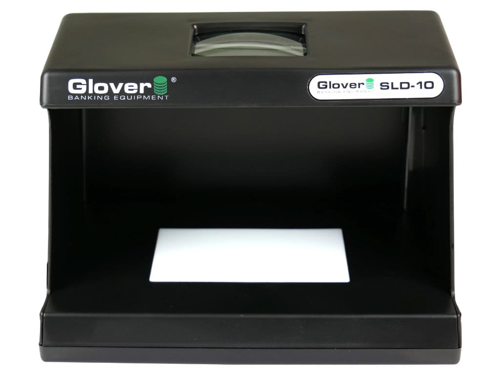 Tester do banknotów Glover SLD-10 UV to niezawodny i uniwersalny sprzęt służący do weryfikacji zabezpieczeń dokumentów, kart kredytowych i banknotów. Urządzenie wykorzystuje promieniowanie UV oraz światło białe w celu umożliwienia kompleksowego zbadania elementów zabezpieczających dokumenty i banknoty. Promienie UV uwidaczniają ukryte cechy badanych przedmiotów, a także poziom luminescencji papieru, zaś światło białe umożliwia sprawdzenie obecności i poprawności znaków wodnych, nitki zabezpieczającej, czy elementu recto-verso. SLD-10 UV wyposażony jest w świetlówkę typu „U” o mocy 9 W o podwyższonej trwałości.