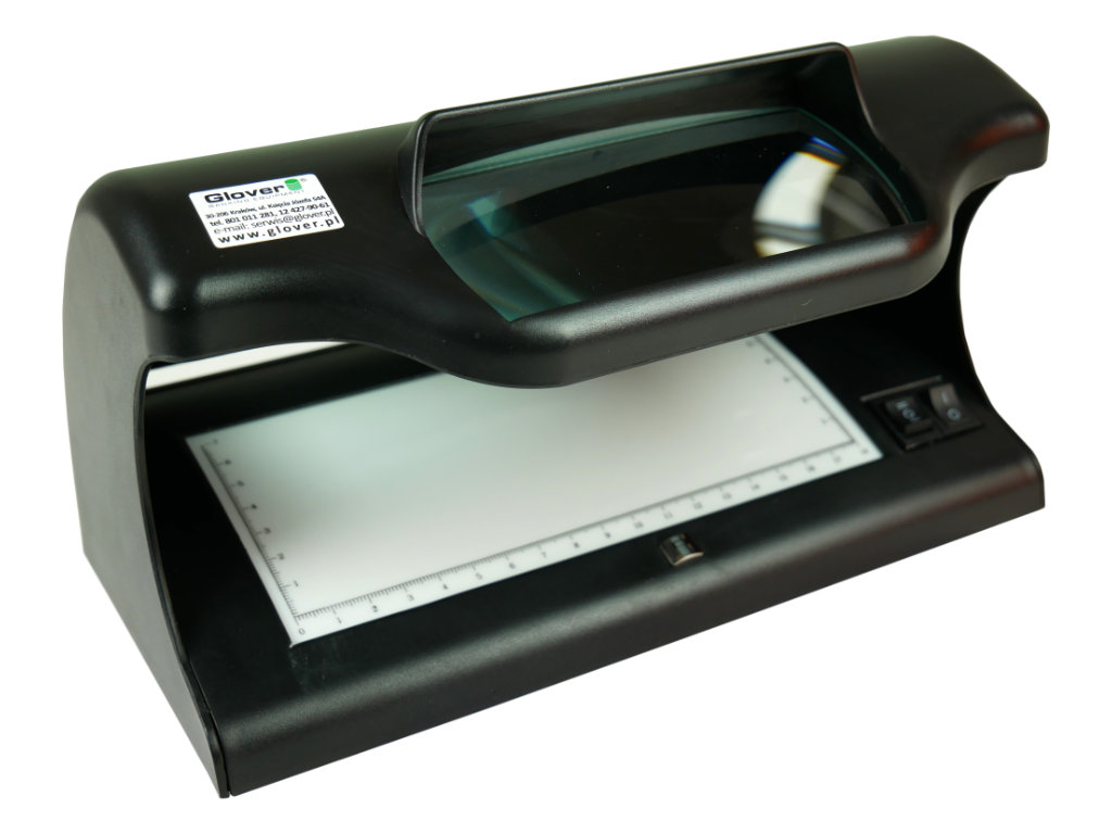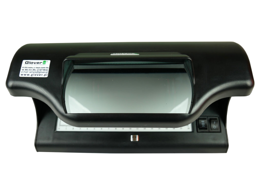 Tester do banknotów Glover SLD-25 UV jest  urządzeniem pozwalającym na weryfikację autentyczności znaków pieniężnych. Zastosowane technologie umożliwiają wykrycie różnicy absorpcji ultrafioletu przez papier oraz znaków widzialnych  w świetle UV . Z pomocą urządzenia bez problemu można zbadać elementy świadczące o autentyczności banknotów, takie jak znak wodny czy element recto-verso. Szkło powiększające umożliwia odczytanie zabezpieczeń w formie mikrodruków. Wyposażenie testera do banknotów w głowicę magnetyczną pozwala zweryfikować obecność magnetycznych zabezpieczeń znaków pieniężnych, np. nitki magnetycznej. Urządzenie dodatkowo wzbogaca lupa z dziesięciokrotnym powiększeniem i własnym oświetleniem (światło białe i UV), umożliwiająca analizę mikrodruków i innych cech.