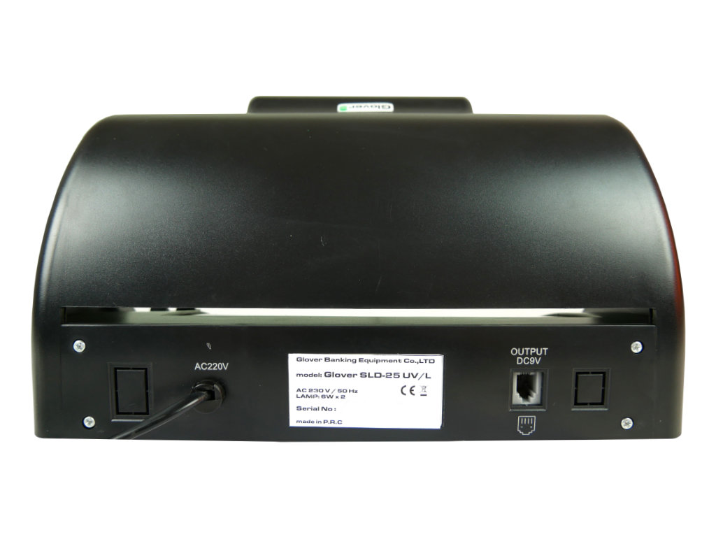 Tester do banknotów Glover SLD-25 UV jest  urządzeniem pozwalającym na weryfikację autentyczności znaków pieniężnych. Zastosowane technologie umożliwiają wykrycie różnicy absorpcji ultrafioletu przez papier oraz znaków widzialnych  w świetle UV.